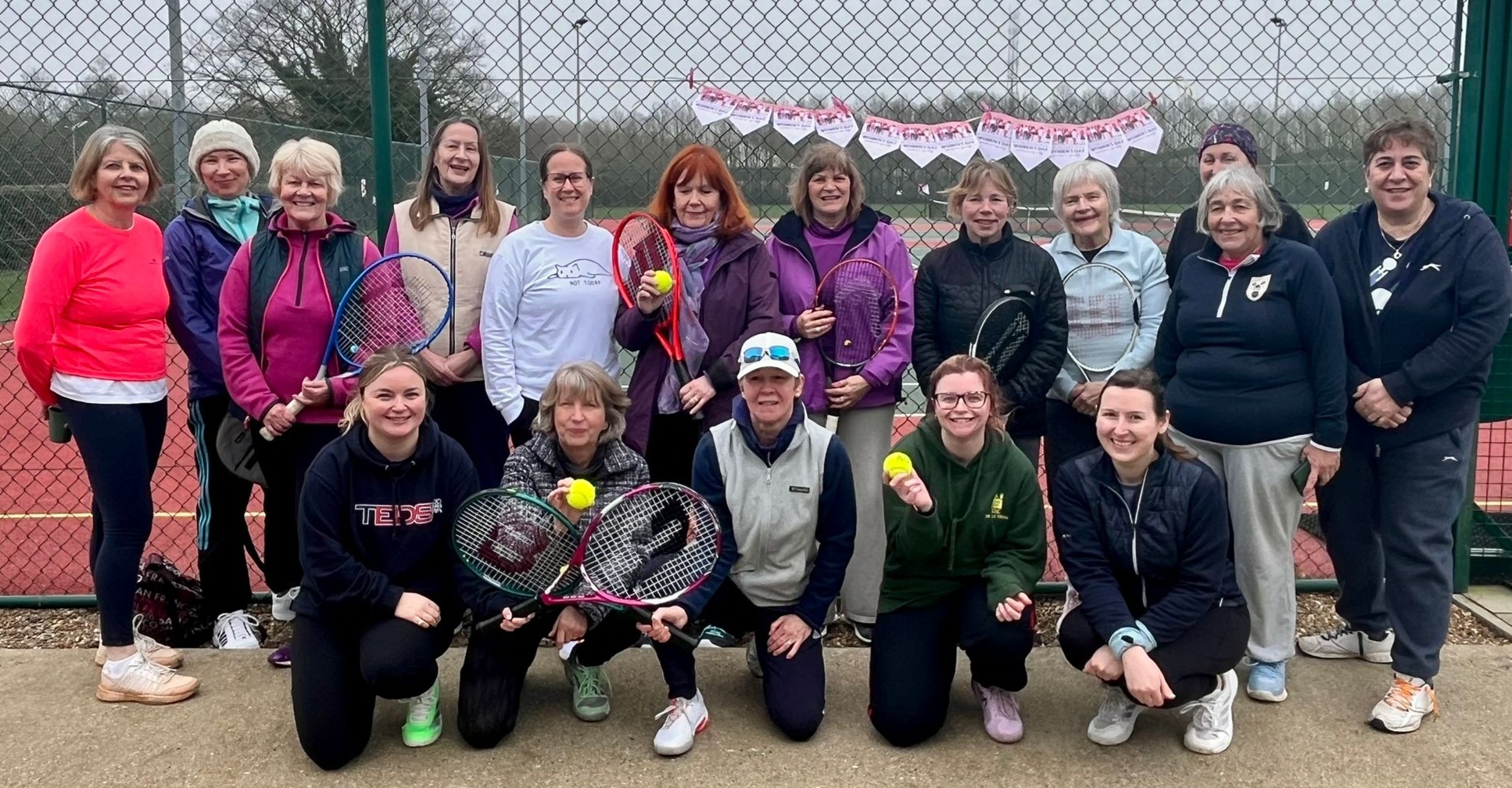 Although it was a grey & slightly chilly morning the courts were buzzing for International Women's Day. The WI members had dusted off their rackets & joined club members for some very informal doubles. The cake afterwards enjoyed by everyone!